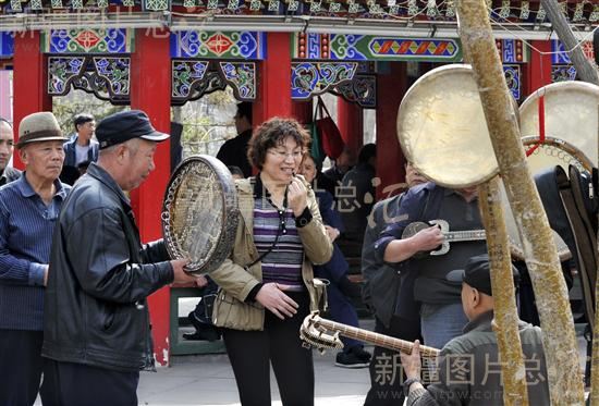 2012年4月7日,市民在乌鲁木齐市人民公园自弹自唱。