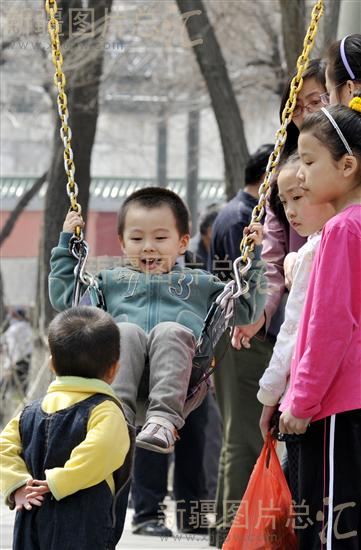 2012年4月7日,小朋友在乌鲁木齐市人民公园游玩。