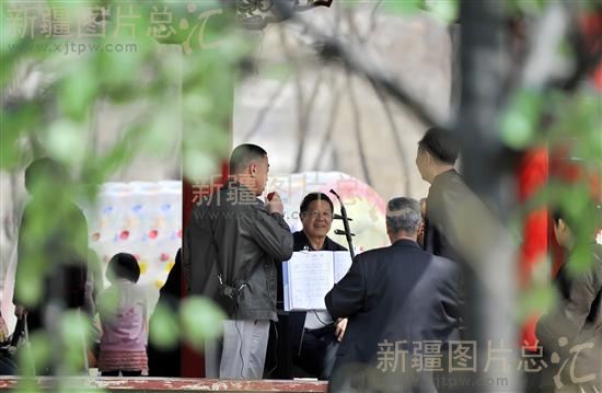 2012年4月7日,市民在乌鲁木齐市人民公园自弹自唱。