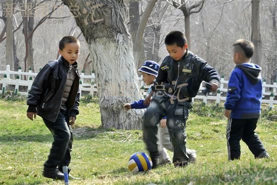 2012年4月7日,小朋友在乌鲁木齐市人民公园踢足球。