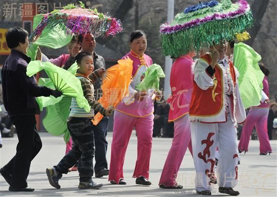 2012年4月7日,市民在乌鲁木齐市人民公园扭起秧歌。