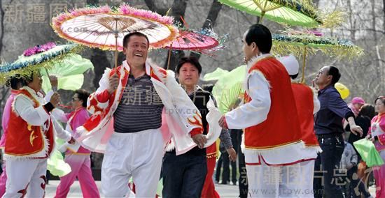 2012年4月7日,市民在乌鲁木齐市人民公园扭起秧歌。