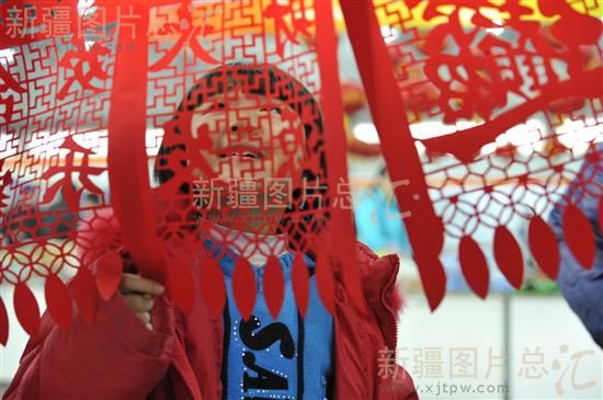 2011年1月15日,朋友在新疆国际博览中心挑选剪纸春联。该中心正在举办为期20天的第四届新疆新春年货博览会。兔年春节将至,市民纷纷涌进年货博览会置办年货、听大戏,乌鲁木齐年味渐浓。