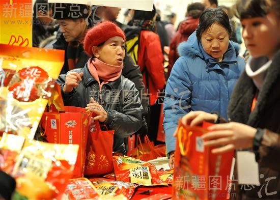 2011年1月15日,乌鲁木齐市民在新疆国际博览中心采购年货。该中心正在举办为期20天的第四届新疆新春年货博览会。兔年春节将至,市民纷纷涌进年货博览会置办年货、听大戏,乌鲁木齐年味渐浓。