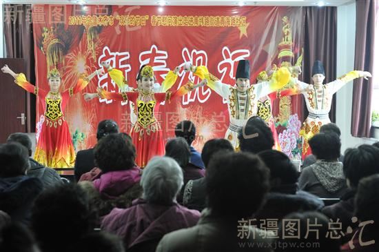 2011年1月25日,演员在位社区居民演出。当日,乌鲁木齐市南纬路街道青海路社区组织居民观看了精彩的迎新春文艺演出,并为她们送去了春联和新春祝福。