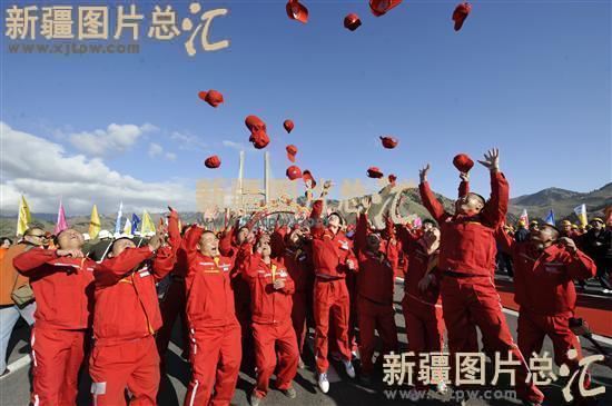 2011年9月30日,果子沟大桥通车。建设者们在欢庆这一时刻。