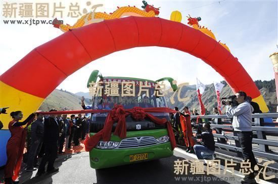 新疆第一条山区高速公路——国道30线赛里木湖——果子沟口高速公路迎来全线贯通的喜庆日子。2011年9月30日上午,在风光秀美的果子沟,在雄伟壮观的果子沟大桥上,自治区党委书记张春贤宣布:“果子沟大桥建成通车!”这标志着新疆公路史上建设难度最大、科技含量最高、最为壮观的赛——果高速公路全线通车。库尔勒——库车高速公路等一批自治区重点公路建设项目也同时宣布建成。