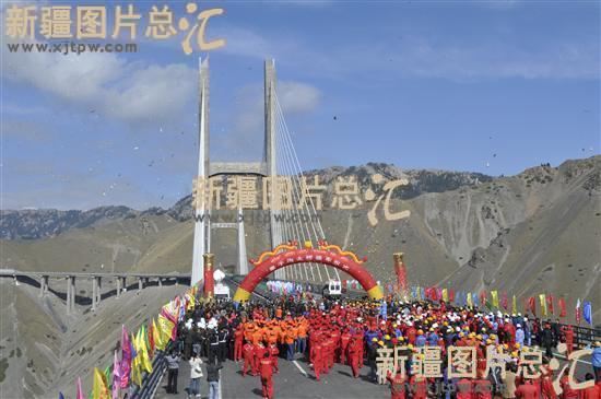 新疆第一条山区高速公路——国道30线赛里木湖——果子沟口高速公路迎来全线贯通的喜庆日子。2011年9月30日上午,在风光秀美的果子沟,在雄伟壮观的果子沟大桥上,自治区党委书记张春贤宣布:“果子沟大桥建成通车!”这标志着新疆公路史上建设难度最大、科技含量最高、最为壮观的赛——果高速公路全线通车。库尔勒——库车高速公路等一批自治区重点公路建设项目也同时宣布建成。