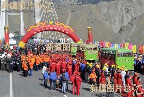 新疆第一条山区高速公路——国道30线赛里木湖——果子沟口高速公路迎来全线贯通的喜庆日子。2011年9月30日上午,在风光秀美的果子沟,在雄伟壮观的果子沟大桥上,自治区党委书记张春贤宣布:“果子沟大桥建成通车!”这标志着新疆公路史上建设难度最大、科技含量最高、最为壮观的赛——果高速公路全线通车。库尔勒——库车高速公路等一批自治区重点公路建设项目也同时宣布建成。