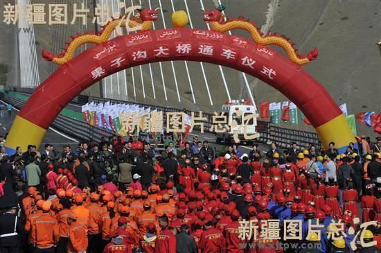 新疆第一条山区高速公路——国道30线赛里木湖——果子沟口高速公路迎来全线贯通的喜庆日子。2011年9月30日上午,在风光秀美的果子沟,在雄伟壮观的果子沟大桥上,自治区党委书记张春贤宣布:“果子沟大桥建成通车!”这标志着新疆公路史上建设难度最大、科技含量最高、最为壮观的赛——果高速公路全线通车。库尔勒——库车高速公路等一批自治区重点公路建设项目也同时宣布建成。