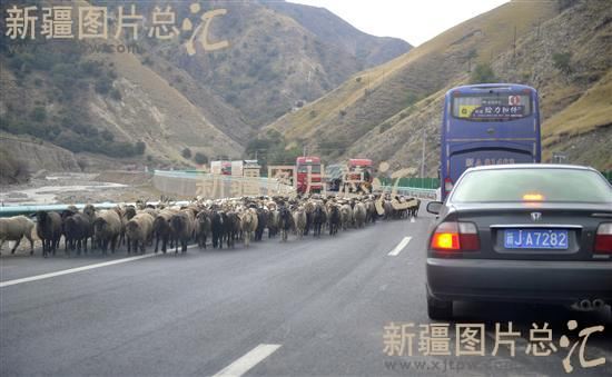 2011年9月29日日,牧民赶着牲畜通过果子沟大桥转场。