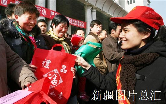 2008年3月3日,志愿者在乌铁局乌鲁木齐站为群众赠送环保购物袋。当天,首府各族志愿者走上街头向市民宣传环保知识,积极引导市民投入到改善市容环境、人文环境、居住环境的实际行动中去,共建环保首府。