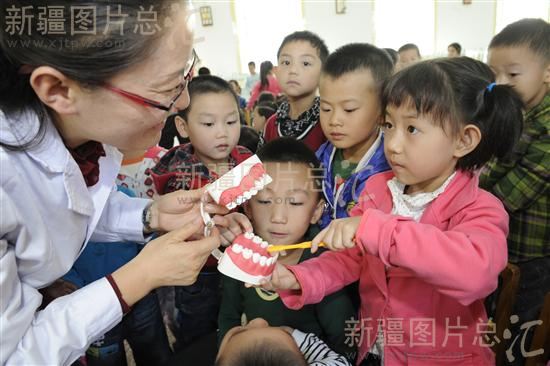 2011年9月19日,乌鲁木齐市第三幼儿园邀请市口腔医院医生来到幼儿园,为该园近百名4~6岁处于换牙期的孩子讲解牙牙齿护理知识、牙齿保洁注意事項。