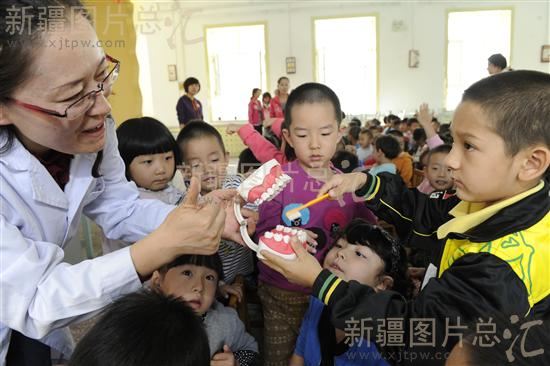 2011年9月19日,乌鲁木齐市第三幼儿园邀请市口腔医院医生来到幼儿园,为该园近百名4~6岁处于换牙期的孩子讲解牙牙齿护理知识、牙齿保洁注意事項。