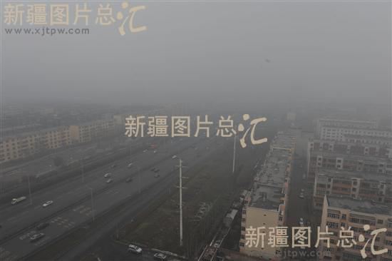 2011年11月26日,浓雾下的乌鲁木齐城区一角。