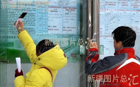 2011年2月24日,求职者在新疆人才市场的招聘信息栏上寻找求职岗位。