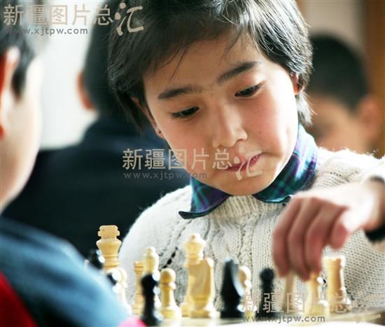 2008年5月1日,由自治区体育总会主办的迎奥运“励思杯”全疆中小学国际象棋比赛在乌鲁木齐市开赛。来自全疆各地的180名中小学生参加为期3天的比赛。这是小学组的学生在比赛中。