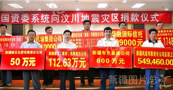 2008年5月21日,新疆维吾尔自治区国资委监管的19个企业向四川地震灾区捐款1078万余元,表达一份爱心。