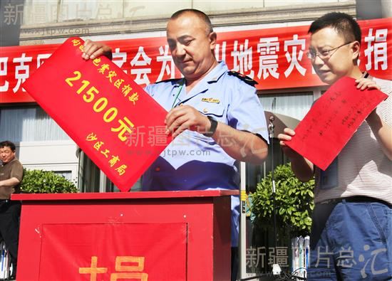 2008年5月14日,新疆乌鲁木齐市沙依巴克区机关、学校、企事业单位在向四川汶川地震灾区捐款。当天,该区红十字会展开为地震灾区募捐活动,共收到捐款110余万元。