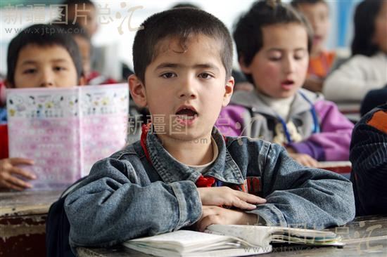 2008年4月19日,新疆阿图什市第一小学双语班的学生正在上汉语课。第一小学从2005年开始实行民汉合校,现有3200名学生,70%是少数民族学生,双语班全部实行汉语教学,取得了良好的教学效果。