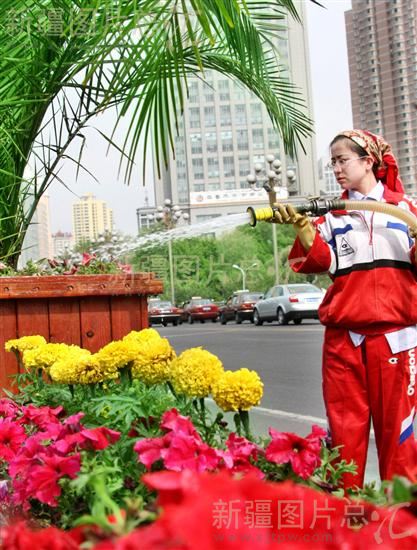 关键字:新疆 乌鲁木齐市 园林工人 花卉 热带植物 植物 城市景观 市容 美化环境 环境 花坛 迎奥运 街道