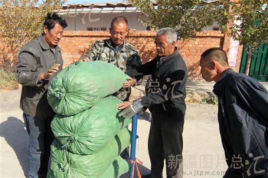 2013年10月24日,新疆哈密市二堡镇宫尚村的枣农在销售大枣。