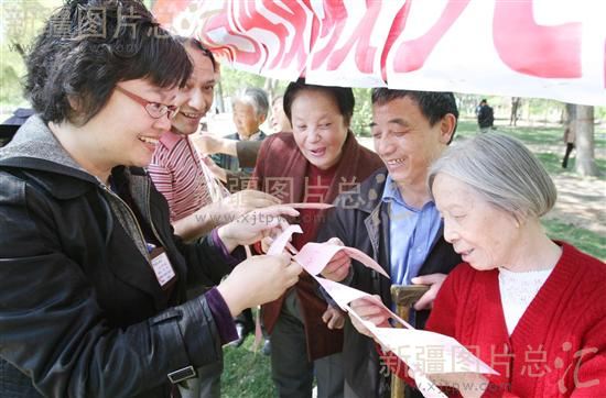 2008年5月8日,残疾人在猜谜语。乌鲁木齐市长江街道冷库社区在全国助残日来临之际,组织社区残疾人在人民公园开展了游园活动。