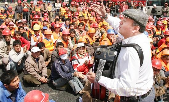 2008年5月1日,乌鲁木齐市文联、总工会等单位,联合在首府友好路改造工程工地举办了《2008劳动者之歌音乐演唱会》,为工人们送去节日的慰问。