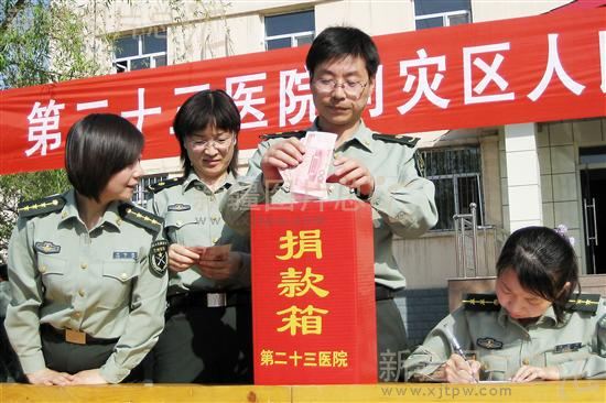 关键字:新疆 兰州军区 23医院 军人 医护人员 捐款 汶川 地震 灾区 献爱心