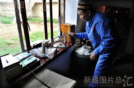 2011年5月9日,技术人员在为牧民饲养的奶牛进行配种改良。