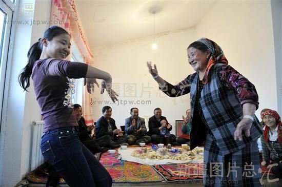 2011年5月9日,木垒哈萨克自治县大南沟乌孜别克族乡的牧民乌拉孜汗和亲友庆贺乔迁之喜。