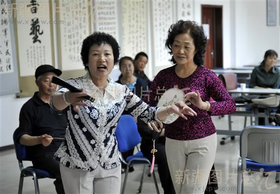2011年5月20日,歌舞队队员在社区活动室里开展文艺活动。