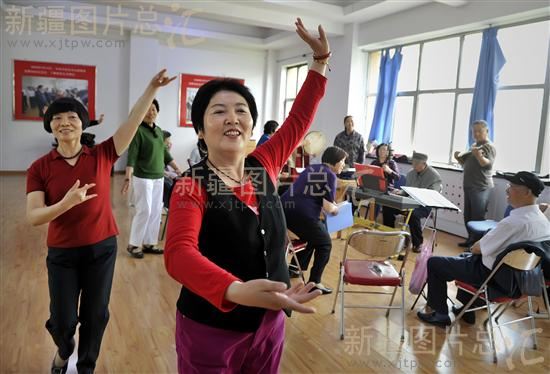 2011年5月20日,歌舞队队员在社区活动室里开展文艺活动。