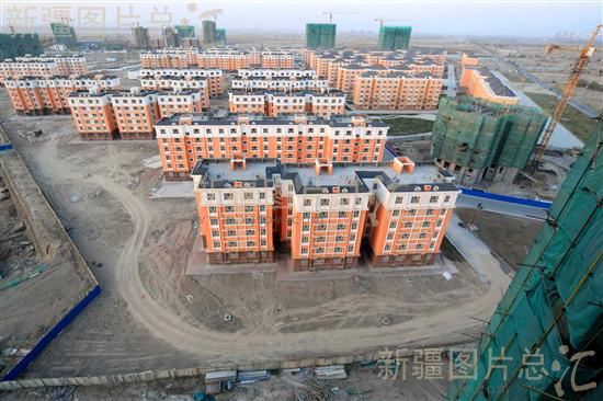 已建成部分投入使用的新疆哈密市新城安置小区全景(2013年10月26日摄)。