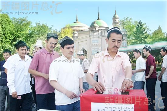 5月22日,新疆伊斯兰学院的师生在为地震灾区捐款。