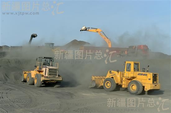 2013年10月29日,新疆老爷庙口岸,工人在海关货场内装卸矿砂。