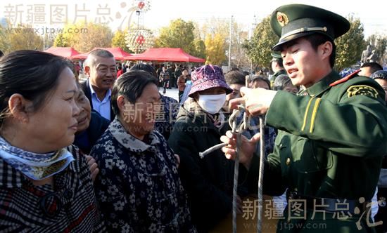 2013年11月2日,消防战士在给社区居民教授逃生绳的正确系法。