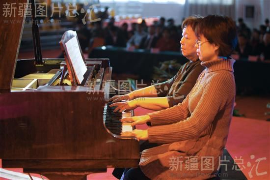 2013年11月3日,在乌鲁木齐市达坂城区文化体育活动中心,来自台湾的艺术家在表演钢琴四手联奏《游吟诗人》。