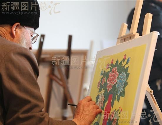 2013年1月17日,农民画艺术家们在绘制刀郎农民画。