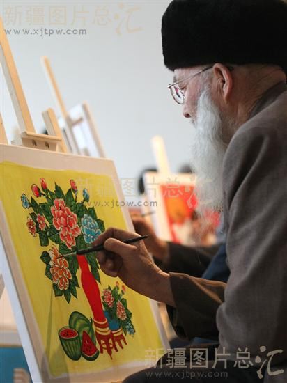 2013年1月17日,农民画艺术家们在绘制刀郎农民画。