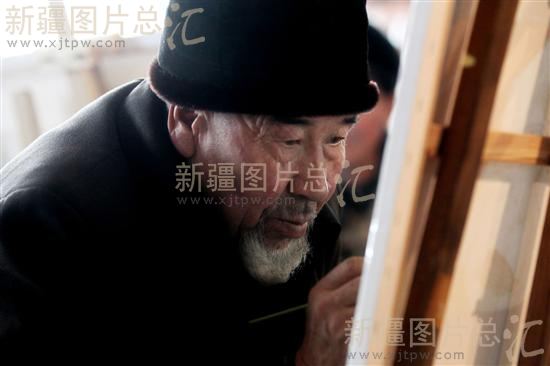 2013年1月17日,农民画艺术家们在绘制刀郎农民画。