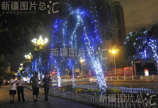2011年8月8日,亮化完工的乌鲁木齐街道。