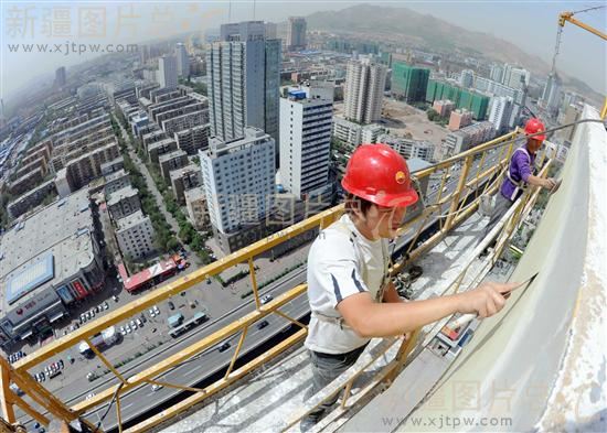 关键字:乌鲁木齐市 沙依巴克区 楼体美化 中国—亚欧博览会 博览会 亚欧博览会 环境 市容 高空作业 工人 蜘蛛人