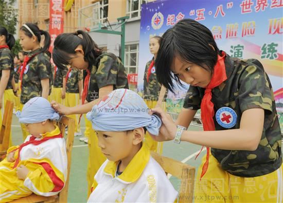 当日,乌鲁木齐市沙依巴克区红十字协会在乌市第3小学举办庆祝世界红十字成立64周年活动。