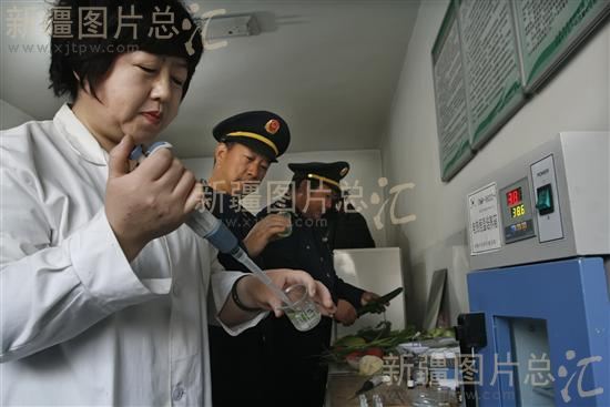 2013年11月12日,乌鲁木齐市沙依巴克区工商局工作人员,在新疆凌庆蔬菜果品有限公司检测点监督工作人员对蔬菜农药残留物情况进行检验。据了解,自2005年起,相关部门在乌鲁木齐市通过统一选点、统一配置检测设备,逐步建立起了农产品质量安全监测三级网络,分批分期在全市建立了农产品质量安全检测站、检(监)测点共283个。