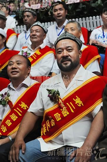 自治区道德模范阿里木·哈力克在颁奖晚会现场。