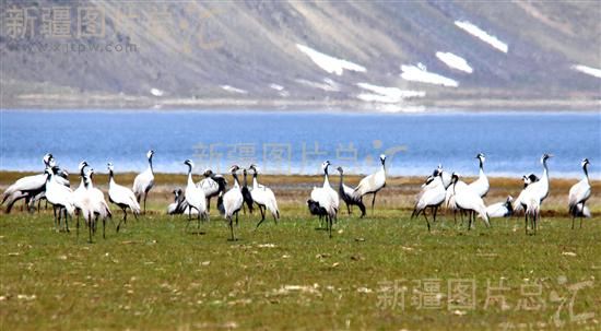 千余只蓑衣灰鹤,野鸭、黑鹳(国家一级保护)等飞禽,栖息在新疆富蕴县可可托海国家地质公园景区可可托海伊雷姆湖畔(摄于2011年4月30日)。