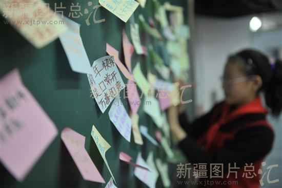 新年来临,乌鲁木齐市第27小学在校内设立了一面心愿墙,同学们将写有自己对新年美好祝愿的五彩纸片贴在上边,为新年祈福。