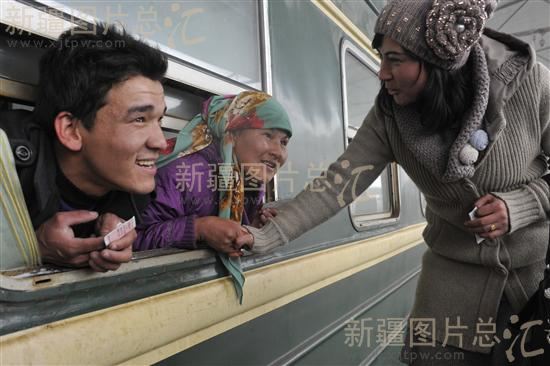 2011年12月8日,新疆和田地区策勒县外出务工人员乘坐前往青岛市的火车,去当地务工。