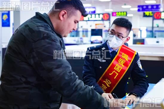 2023年2月20日,阿拉山口出入境边防检查站公路执勤民警在对入境人员进行政策解读。赵越摄